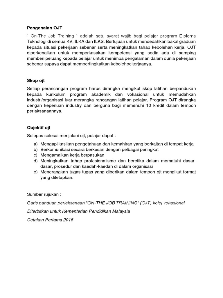 Ahmad tajudin bin jabpengarahbahagian pendidikan teknik dan vokasionalkementerian pelajaran malays. SHAHMIHAZIQ BIN MOHD KHUSAIMI NO KAD PENGENALAN. Tempoh latihan industry atau On Job Training OJT adalah selama 18.